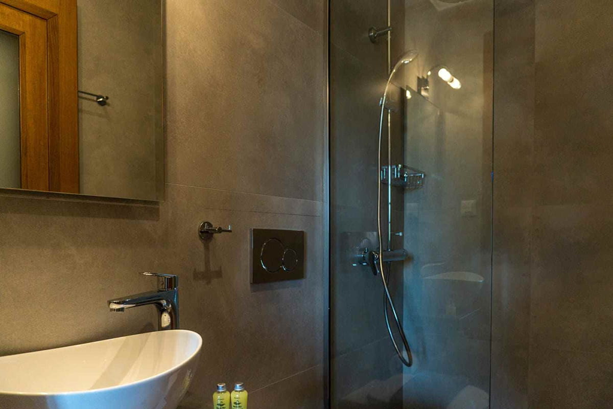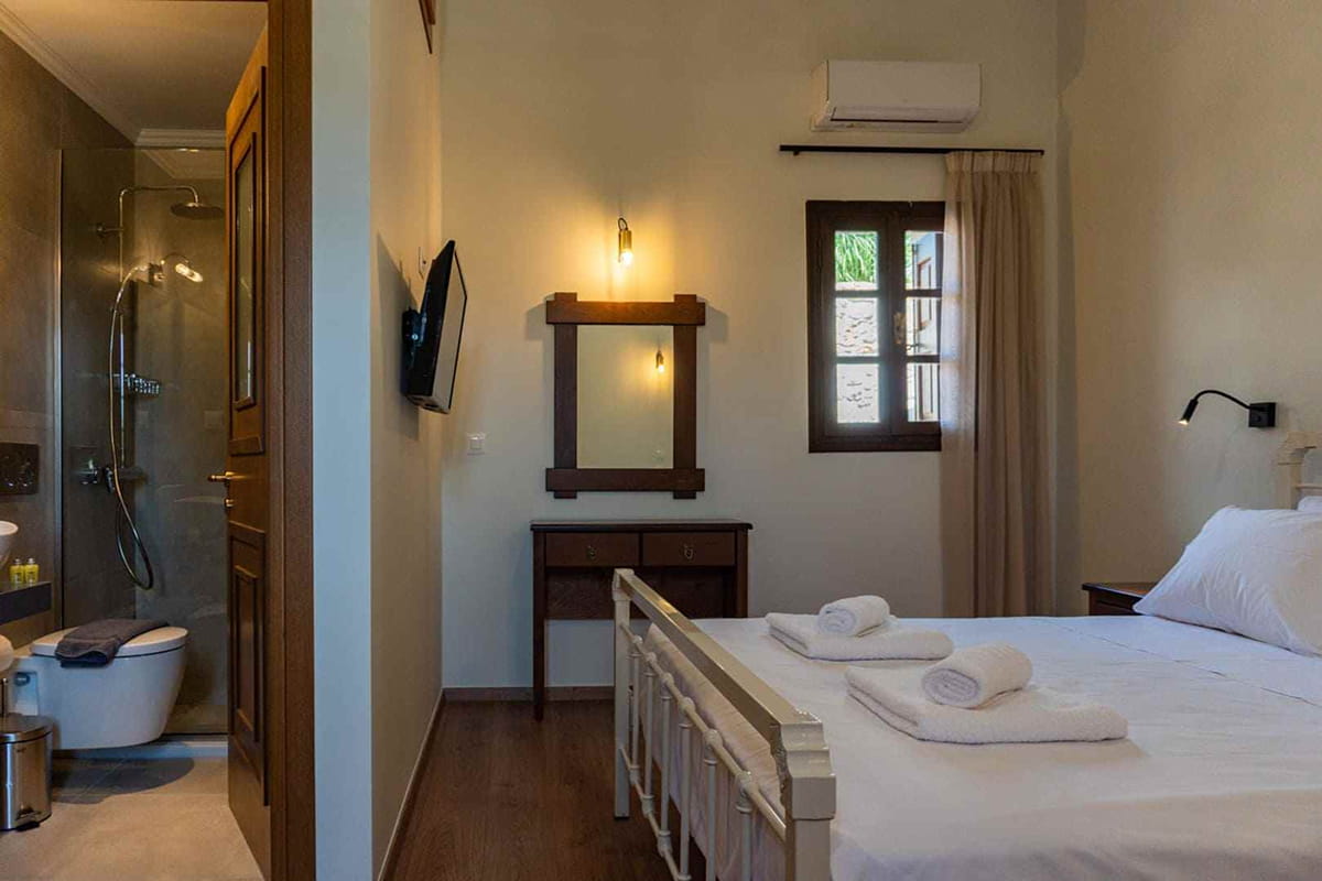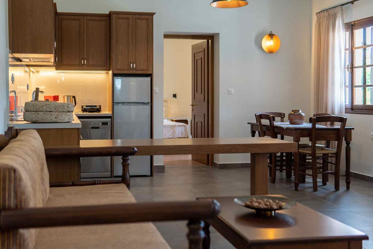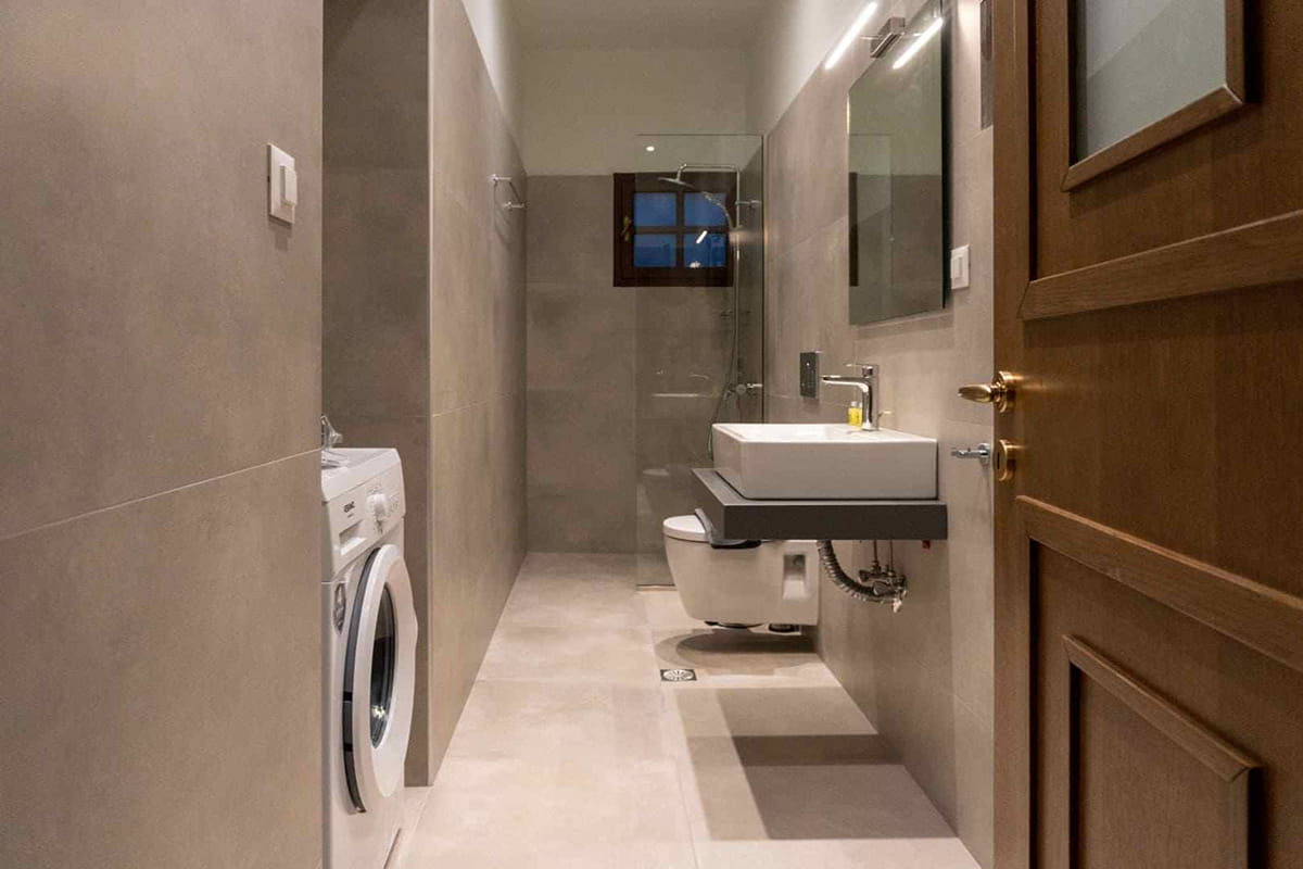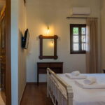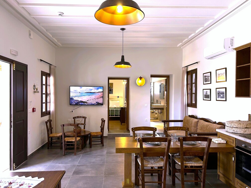 Experience Olga, our charming and spacious suite. Featuring two bedrooms — one with a comfortable double bed and the other with two single beds that can be transformed into a double using a topper mattress — plus a sofa bed featuring a folding mechanism, Olga accommodates up to 6 guests. With two bathrooms, convenience and privacy are assured during your stay. Step outside to discover the inviting yard, providing a delightful space to relax and unwind. Olga is equipped with a washing machine and a dishwasher, adding ease to your daily routine. For your convenience, the suite includes appliances such as a coffee maker, toaster, kettle, and hairdryer. A sink and a fully equipped kitchen — including plates, glasses, cutlery, and pots — are provided. Enjoy a tranquil atmosphere with sound insulation, ensuring a peaceful and enjoyable stay in Olga.